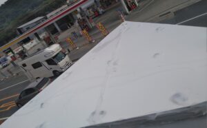 看板の上部を新たに蓋取付して看板鉄骨枠が