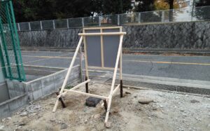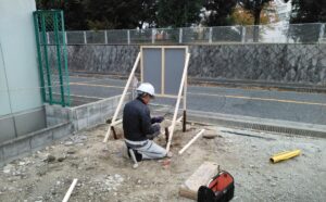 番線やビスを使用して看板を取付します