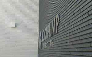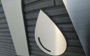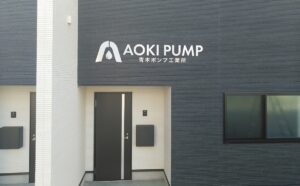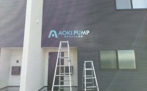 2025年12月11日 箱文字・カルプ文字・銘板 ステンレス切文字|大阪府柏原市|2025.12.11 大阪府柏原市の株式会社青木ポンプ工業所様より ヘアーラインの切文字をご依頼いただきました。 施工前 原稿用紙で取付位置確認 切文字取付完了
