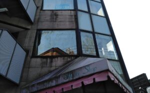 ガラス面外側に貼られてるシートは高所作業車使用して剥がしました